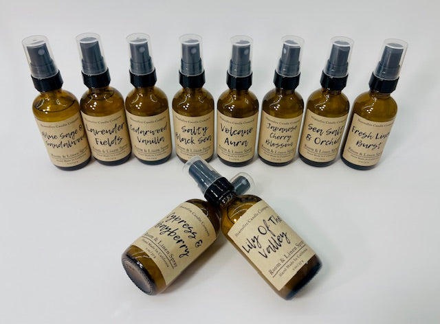 Transform any space into a sanctuary of freshness with our luxurious room and linen sprays. Crafted with the finest fragrance oils, each spray is designed to infuse your surroundings with delightful aromas that linger and uplift. Whether spritzed onto your linens for a soothing night's sleep or used to refresh your living areas, our sprays offer a touch of elegance and serenity to your everyday routine.